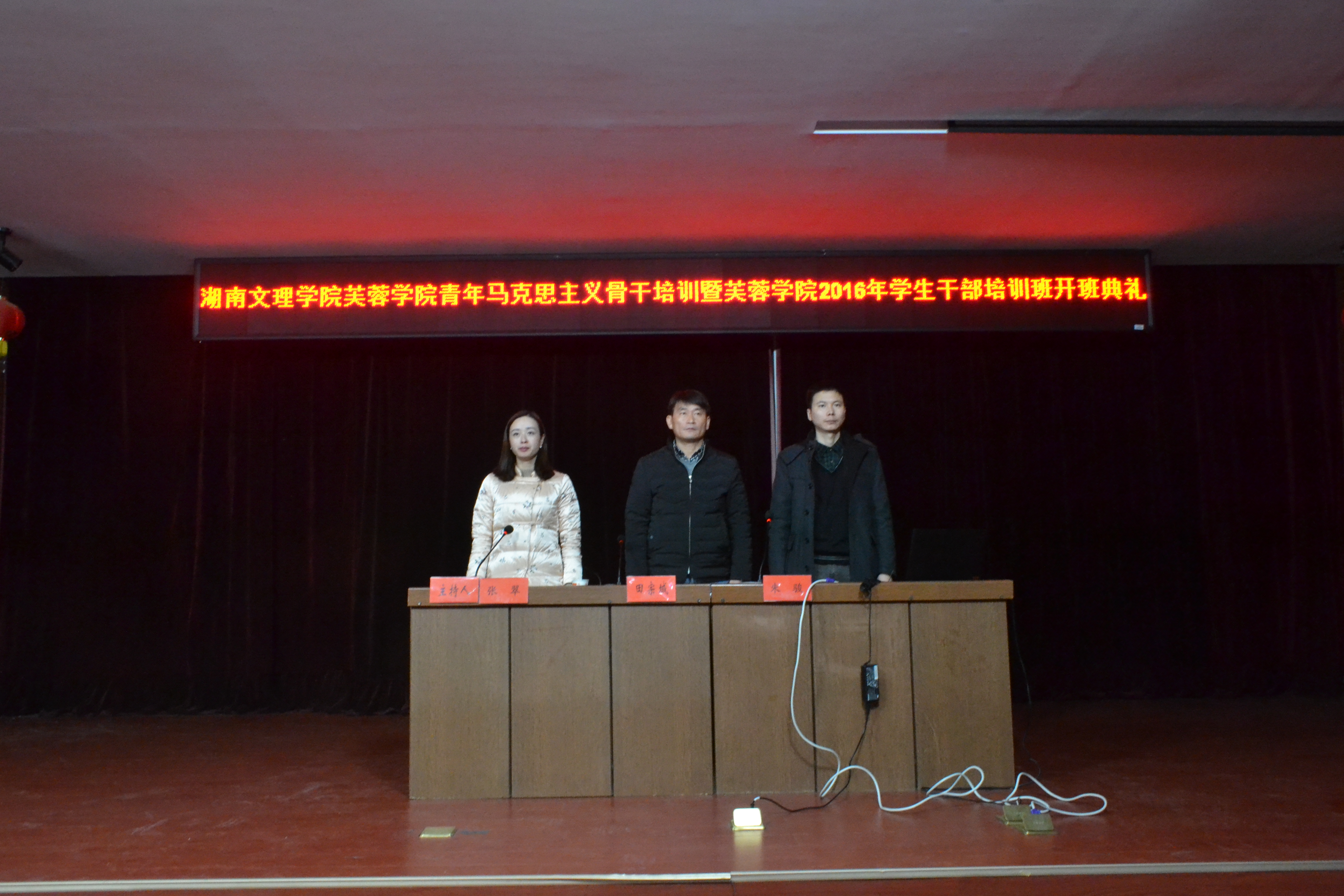 典礼伊始,全体起立奏唱国歌。随后,朱骏老师宣读《湖南文理学院芙蓉学院青年马克思主义骨干培训方案》,明确了本期培训班的指导思想、培养原则、培训要求以及课程安排,在积极响应青马培养工程要求的同时,加强了共青团的基层组织建设。紧接着,田书记以“当代大学生干部应具备的能力和素质”为主题为同学们讲授了第一期学习内容,他特别强调了培养学生干部无私奉献精神、埋头苦干精神、开拓创新精神,提升学生干部工作能力、组织能力、协调能力、执行能力的重要性。