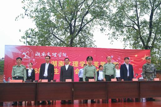 湖南文理学院院长廖德岗,副院长曾凡军,副院长周志平,副校长李钢,党总支书记田宗城,湖南省军分区总军办付强少校以及各教学系(部)负责人出席了大会检阅军训成果。大会由文理学院武装部副部长肖杰平主持。
