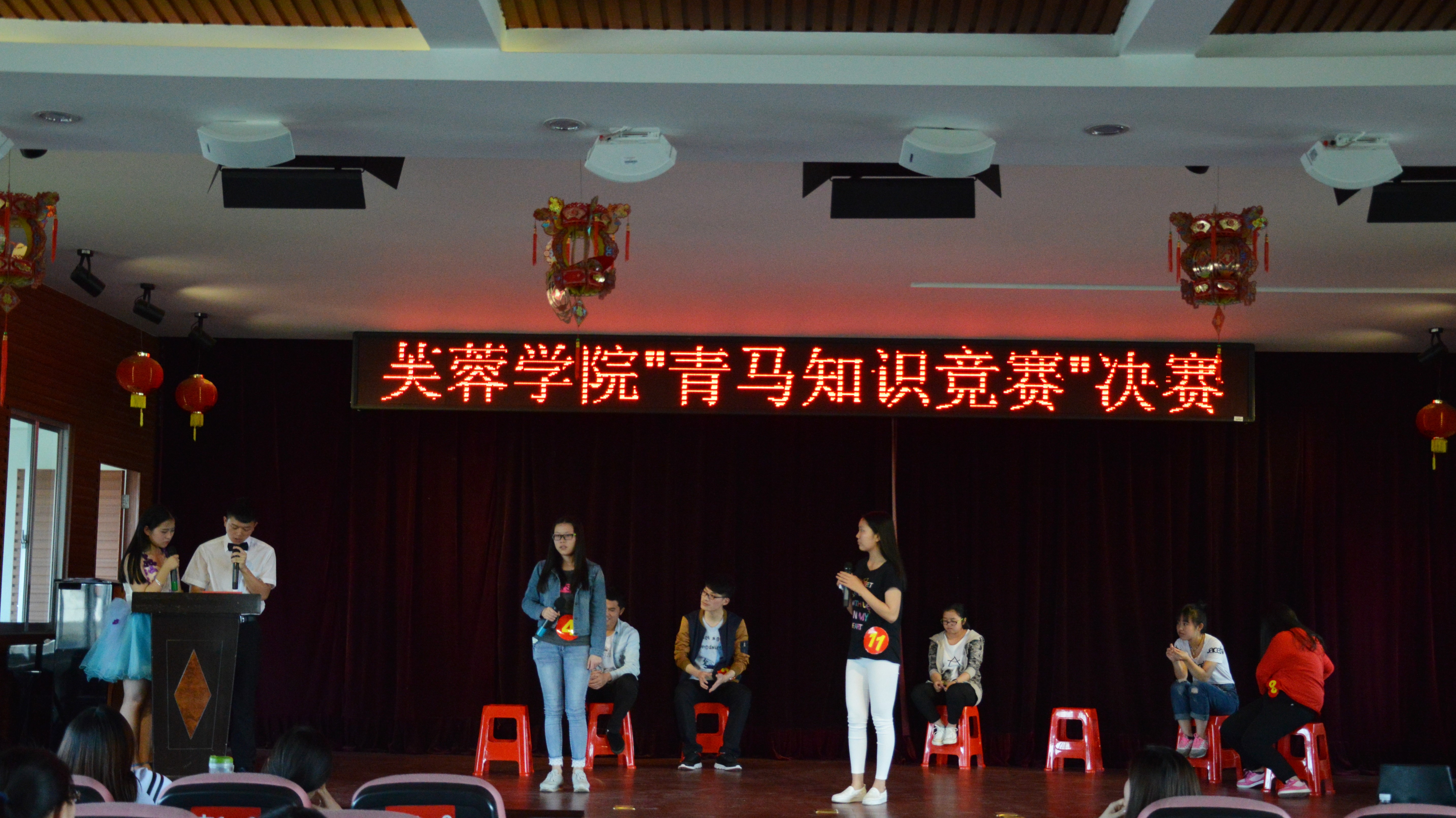 (通讯员:谢佳蓉)5月17日下午3:00,我院“青马知识竞赛”决赛在第一实验楼多功能报告厅顺利举行,出席本场比赛的评委有院团委张翠老师。此次活动由朱孟韬、陈宇航同学联袂主持,参加本次决赛的有我院各系的十二名优秀选手。