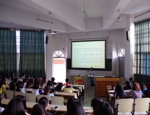 陈彦洁同学用一口流利的英语为大家介绍了英国作家维多利亚·希斯洛普的第一部长篇小说《岛》,并从多个方面对该作品进行了详细深刻的分析,不仅剖析了书中体现的美与丑、光明与黑暗,还利用书中人物的经历引发大家对人性的思考,以此来激励大家在绝望的处境下也要心怀希望。她从“爱与希望”角度为大家讲述了作品背后的内涵以及自身感悟,她谈到“恶劣环境的幸存者往往垂青于那些能好好适应它的人们”,并引用泰戈尔的诗句“世界以痛吻我,要我回报以歌”激励大家面对苦难时应以积极的态度面对。讲座结束后,同学们踊跃发言提问,陈彦洁一一作了解答。刘肇云及唐晓蓉两位老师分别指出:在当今物欲横流的社会里,保持一份阅读的宁静和独立的思想实在是难能可贵,也借此呼吁大家以陈彦洁同学为榜样,积极思考。李宝斌主任对陈彦洁的讲座进行了总结,他认为当代大学生应深刻地思考,广泛地阅读,丰富自身的知识素养,并鼓励大家向陈彦洁学习。