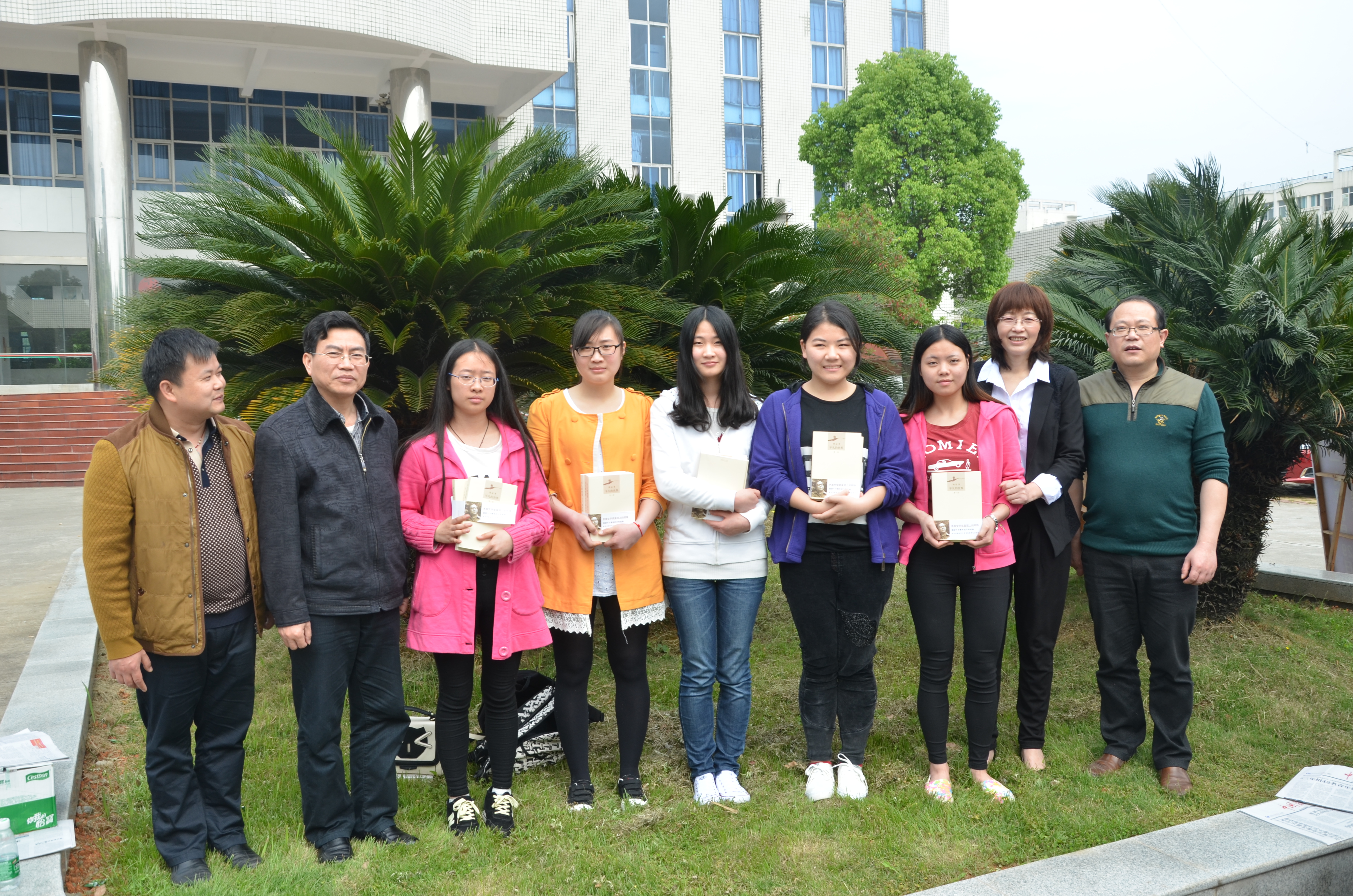 (获奖的学生读者与领导合影)