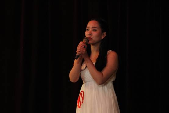 一首首动听的歌曲,迎来了观众一阵阵加油喝彩声,晚会高潮迭起。汉语言1204班的沈璐带来的经典歌曲《恰似你的温柔》,以优柔的女性歌喉,征服在场观众。