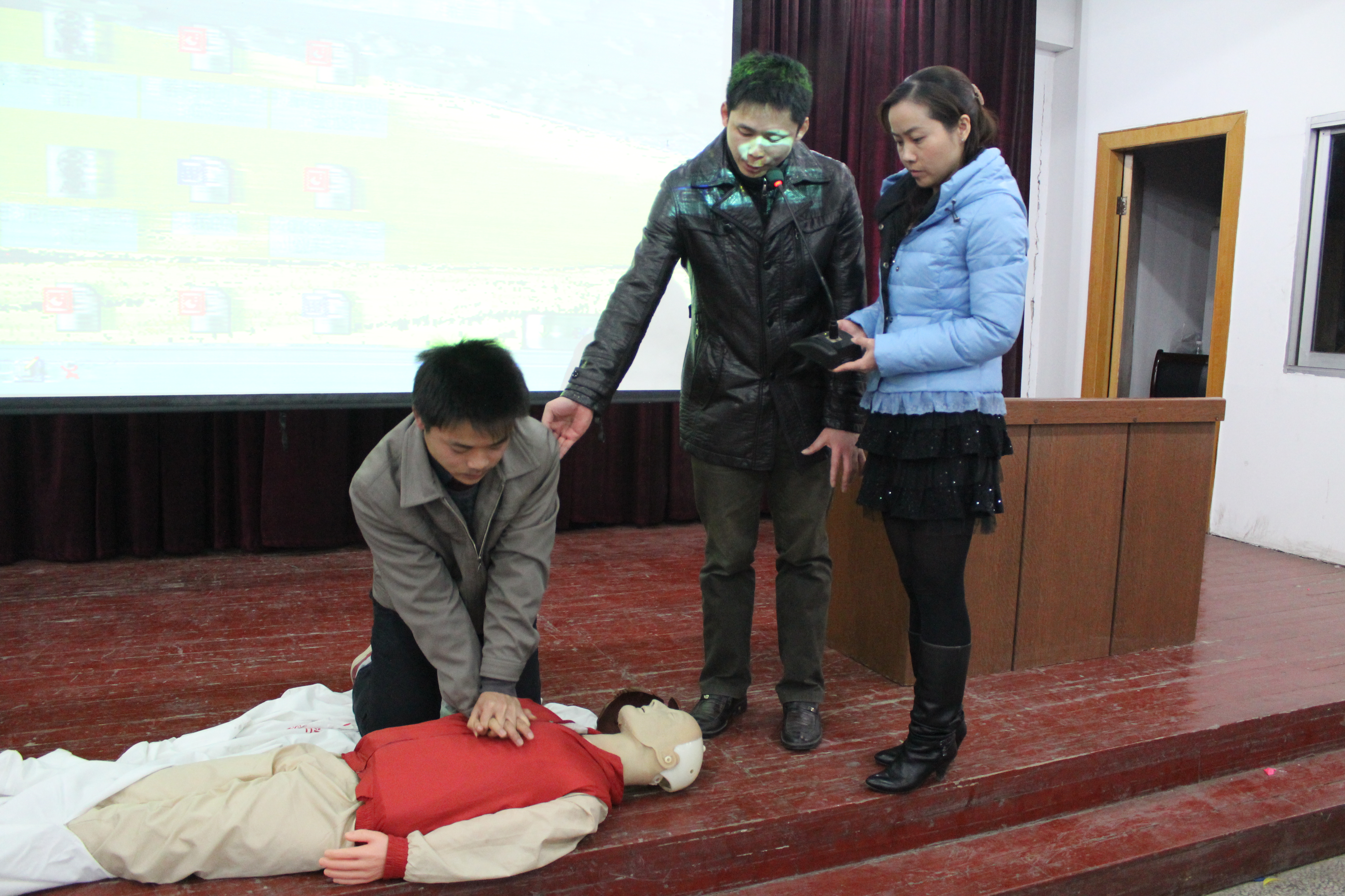 培训会上,李主任幽默的言语,清晰的条理加上对发生在我们身边事例的分析,让大家对心肺复苏术有了更进一步的了解。会场一直保持着井然的秩序、活跃的场面。此次培训会加强了我院师生对院前急救重要性的认识以及心肺复苏术的实际操,大大提高了我院师生的应急救治能力。