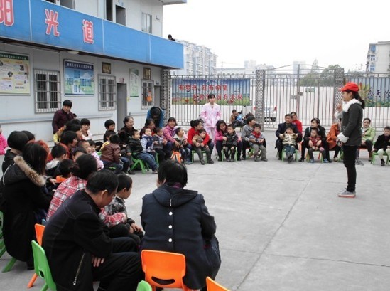 下午一点,志愿者们抵达康复中心,在工作人员的配合下,志愿者们表演了精心准备的节目:喜羊羊主题曲《别看我只是羊》《黄鹂鸟》等儿歌,《明天会更好》《爱的奉献》等合唱,《十二生肖》等童话,《拍手舞》等舞蹈。孩子们都融入其中,跟着拍手、哼唱,现场一片欢乐