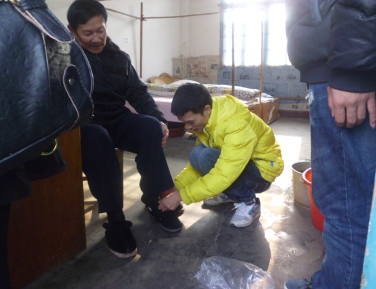 在部长的带领下,志愿者们分工合作,团结一致,为老人们派送水果、鞋子、袜子和手套,打扫房间,整理衣物,叠被子,擦玻璃,陪老人散步、聊天、唱歌忙得不亦乐乎。其中丁姝文同学为老人脱下陈旧的布鞋,换上崭新的棉鞋,并亲切的问老人:“这鞋合不合适,暖不暖和?”老人开心地点了点头。吴泽龙同学细心的为老人修剪指甲,带上手套。为我们每一个志愿者树立了一个好风范,好榜样。志愿者的到来让原本安静的敬老院沸腾起来,他们的关爱让老人们苍白的脸露出久违的笑容。