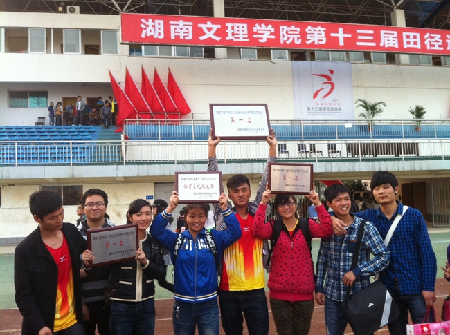 11月1、2日,湖南文理学院第十三届田径运动会在学校第一田径场隆重举行,我院60多名选手参加比赛,在竞赛场上,运动员力克群雄,奋力拼搏,再一次取得男子总分第一、女子总分第一、团体总分第一的优异成绩,实现了团体总分两连冠,为学院争得了荣誉。精彩的方阵表演和拉拉队表现也锦上添花,为学院赢得“体育文化风采奖”的美誉。