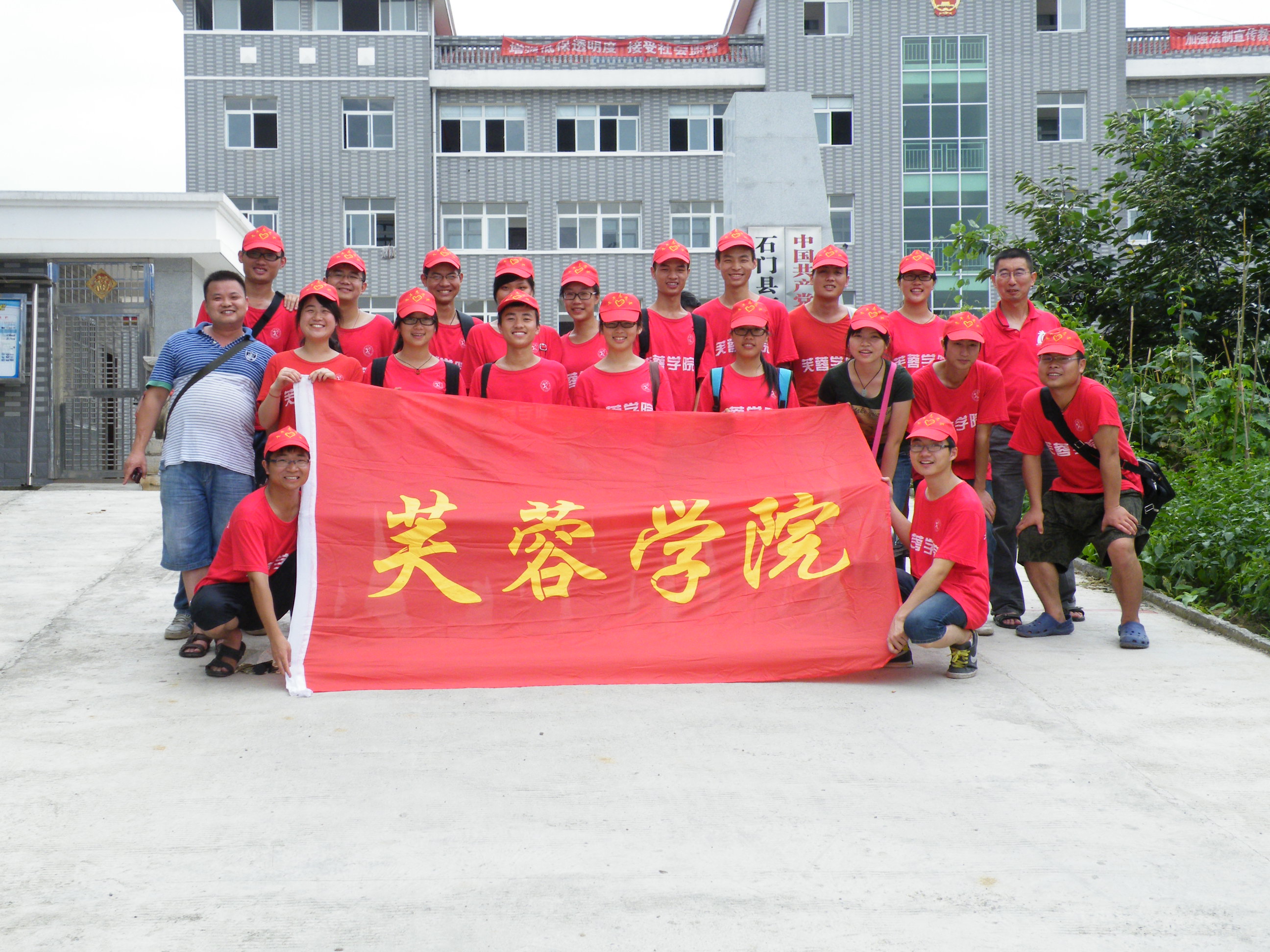 “三下乡”毫无疑问是将理论付诸于实践的平台,是成才的重要途径。我们当代大学生应在实践中去认识现代社会,去体验生活的美好及人生的真谛。践行着“青春在践行科学发展观中闪光”的主题,2012年湖南文理学院芙蓉学院的19位同学在文学与社会科学系主任黄向阳、学生工作部主任唐国胜两位老师的带领下,从课堂走入农村,去了解农村的风土人情,并用“科技、文化、卫生”丰富农村生活,提高村民素质,满足村民文化需求。风华正茂的我们风风火火的踏上了石门县雁池乡的社会实践之路。
