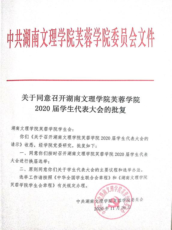 2.《关于同意召开湖南文理学院芙蓉学院2020届学生代表大会的批复》