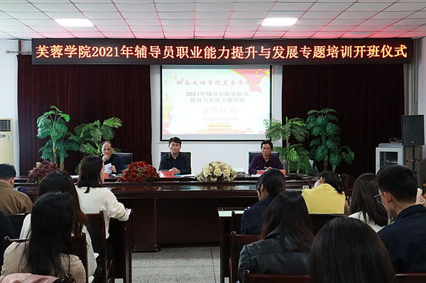 为培养辅导员队伍的职业归属感和责任感,提升辅导员的团队协作意识,培养辅导员的凝聚力,3月29日下午2点30,我院2021年辅导员职业能力提升与发展专题培训开班仪式在二会议室举行。 学院党委副书记田宗城、党委副书记黄錾、副院长周志华出席开班仪式。开班仪式由学院副院长周志华主持。