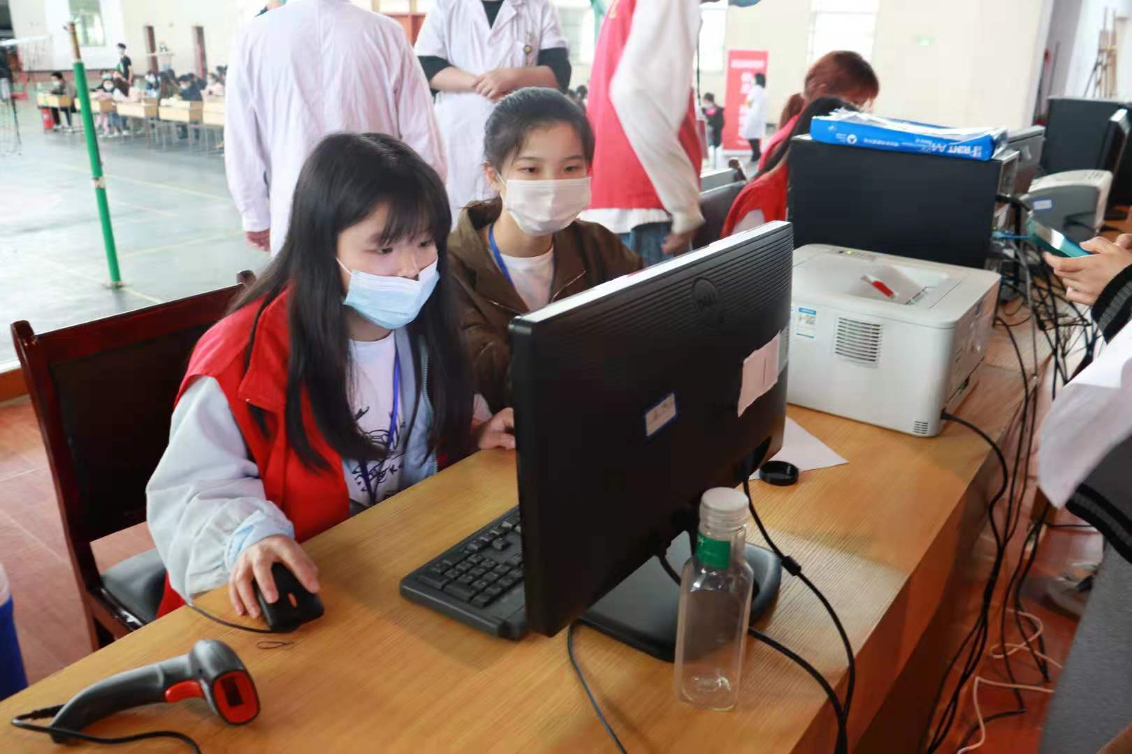 新冠疫苗接种现场有条不紊,秩序井然,芙蓉志愿者们在何筱老师的指导下,配合默契,在各自的岗位上认真为同学们服务,保证同学们顺利完成接种的每个步骤。