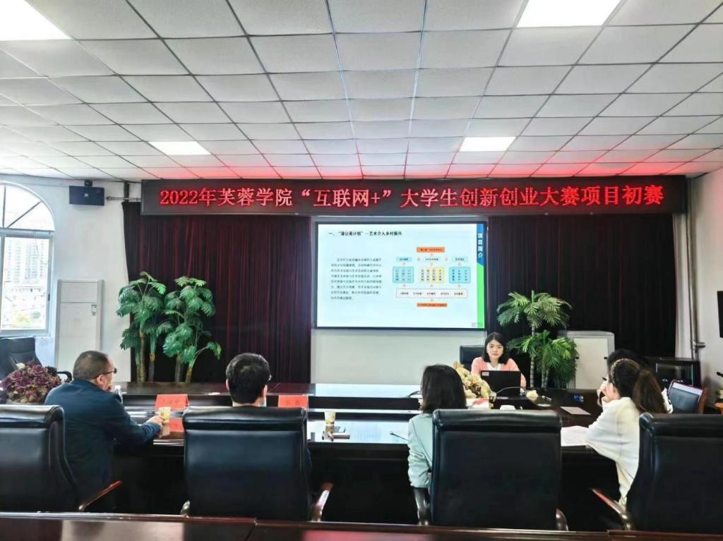 本网讯(通讯员赵敏)为进一步营造学校创新创业氛围、提升学生创新创业意识、以期达到以赛促学、以赛促教的效果。4月21日,我院于图书馆二会议室举办2022年芙蓉学院“互联网+”大学生创新创业大赛项目初赛的选拔。芙蓉学院党委副书记、院长乔臣,经济与管理系党总支书记、主任李祖全,团委书记张翠出席比赛并担任评委,学工部王胜男参与此次比赛。大赛由团委佘晨主持。
