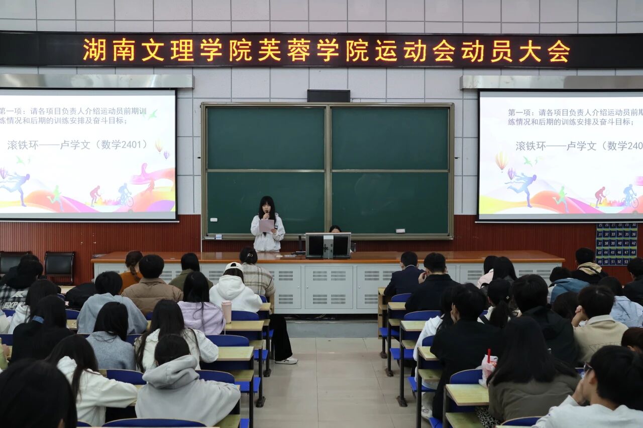 本网讯(通讯员李佳奇)秋风送爽传暖意,扬帆奋进正当时。为鼓励运动员积极备赛、保障运动会各项工作有序进行,充分展示芙蓉学院学子奋发向上、勇于拼搏的精神风貌,我院于2025年10月27日中午12时30分,T3-D301教室举行了运动会动员大会。