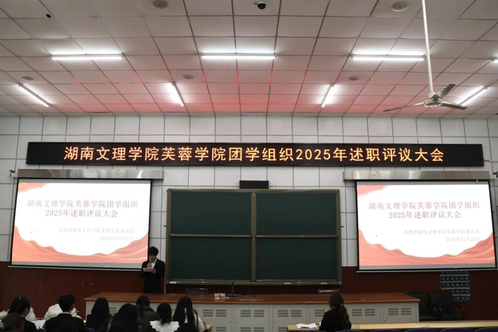 本网讯(通讯员谢碧青)为全面总结学生组织工作成效,明晰后续工作思路,12月22日,湖南文理学院芙蓉学院学生会2025学年度述职评议大会于T3-D301顺利举行。学院学工部主任李慧、团委刘雅婷老师出席会议,全体团学组织干部干事与会,会议由办公室副主任樊芝缨主持。