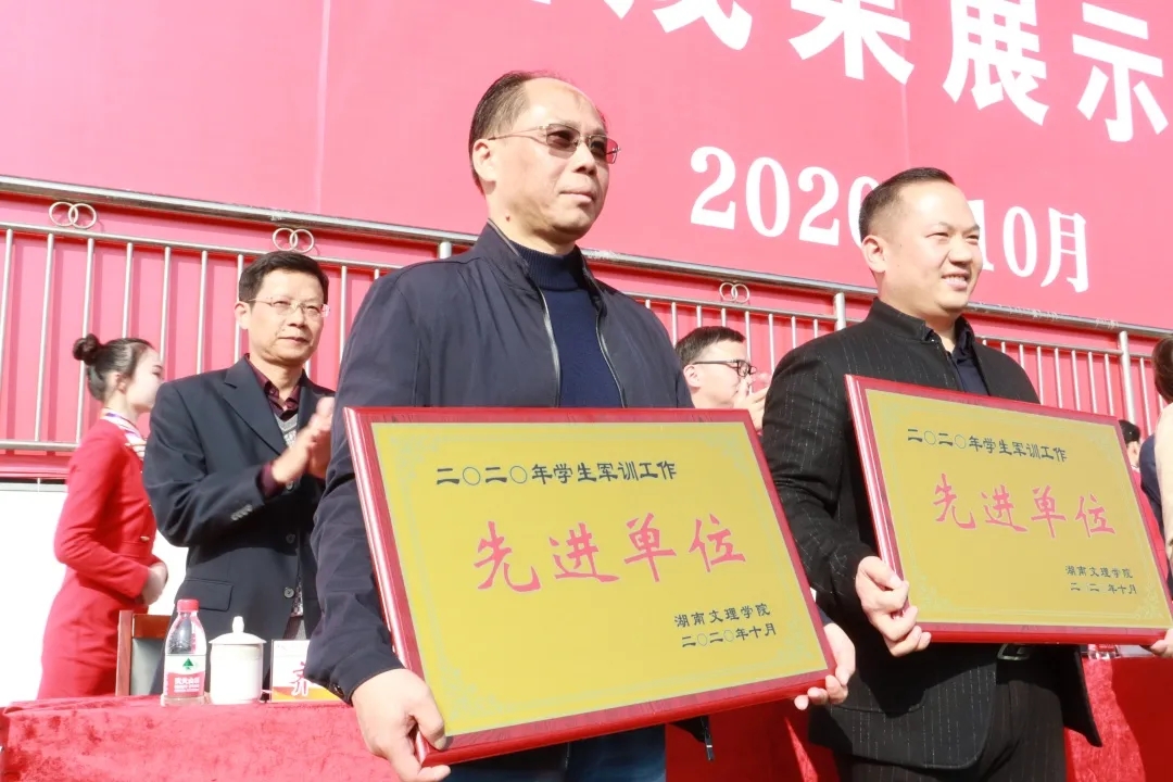 10月23日上午,湖南文理学院2020级新生军训成果展示暨总结表彰大会在第一田径场隆重举行。我校各领导、老师、军训教官、以及全体2020级学生等出席了本次大会。副校长刘春晖对军训工作总结表彰进行讲话,代表学校党委、行政对2020级新生取得的军训成绩表示祝贺,表扬同学艰苦奋斗的精神,向此次军训活动中辛勤训练的全体教官、在一线的工作人员表示由衷感谢。党委副书记龚卫明宣读了《关于表彰2020年学生军训工作先进单位、先进个人的决定》。