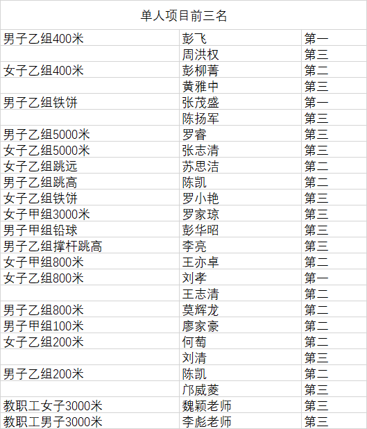 湖南文理学院芙蓉学院2020年体育运动会成绩公示