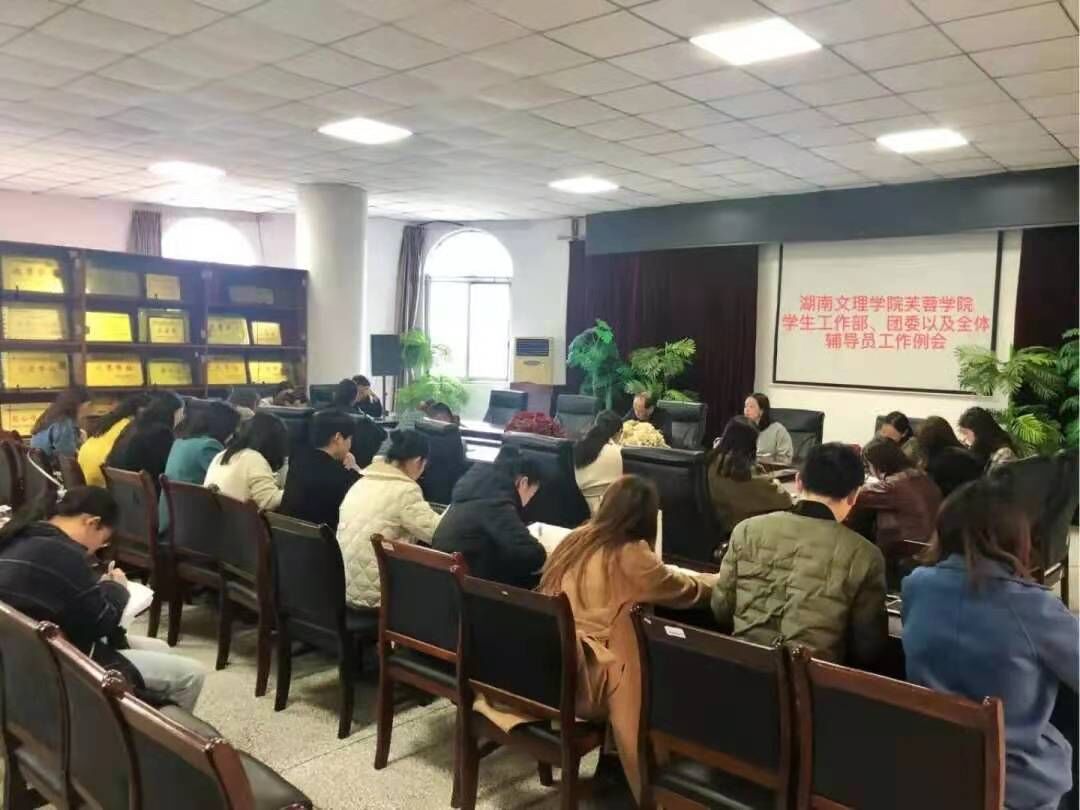 3月15日芙蓉学院在图书馆第二会议室举行了学工部,团委及全体辅导员例会。对入党,主题日活动,献血活动,科技文化节,转专业学生寝室管理和辅导员职责等做出了强调和工作指导。