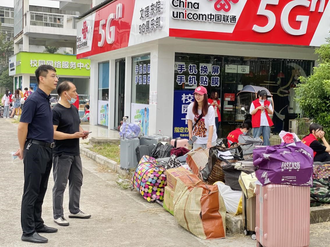 党委副书记、院长乔臣(左一)、党委副书记黄錾(左二)现场指挥东校区搬迁工作