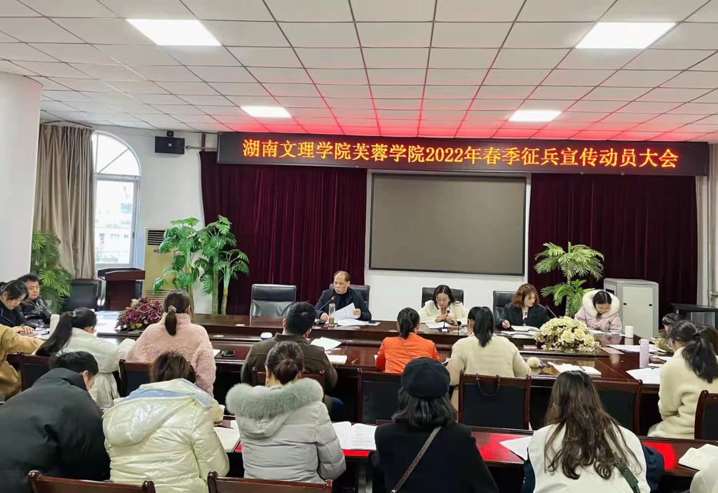 为了进一步激发了广大学生投身军营、献身国防的内在动力,提升了有志青年参军入伍的积极性。12月13日下午两点,我院2021年春季征兵工作宣讲动员会在二会议室顺利召开。党委副书记黄錾出席会议,团委、学工部全体老师及各系辅导员参加了会议,大会由学工部何筱老师主持。