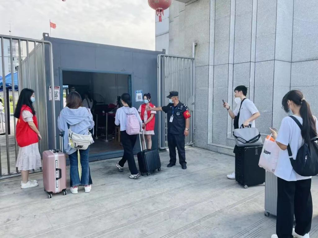 本网讯(通讯员李莞莹)2022年9月3日,湖南文理学院芙蓉学院迎来了首批秋季开学返校学子。根据学院疫情防控和校园安全防控有关工作要求,学工部对秋季返校工作精心组织,细致部署,安排志愿者维持现场秩序,返校同学在志愿者的指导下,有条不絮的扫描“健康码”进入校园。