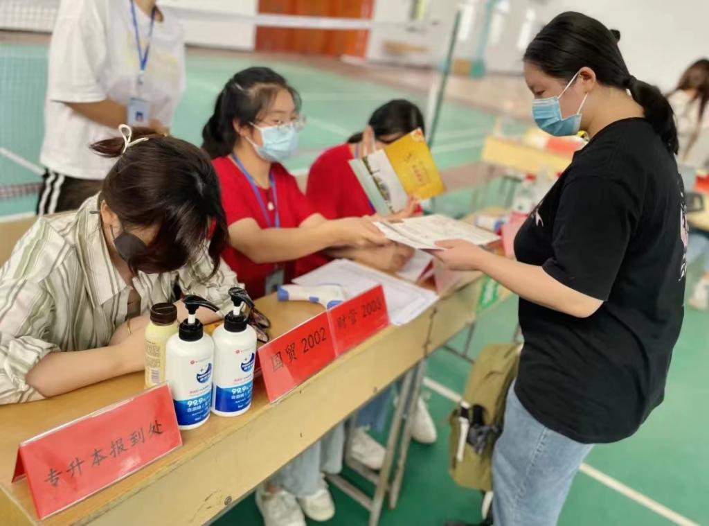 校门口、宿舍、风雨操场均安排了志愿者协助报道。校门口的志愿者负责校园扫码信息,体温检测,帮扶行李等工作;风雨操场的志愿者,负责行李消杀毒,引导返校学子到报道点报道,报道现场,学生们佩戴口罩,在工作人员指引下,完成查验48小时内核酸检测阴性证明、健康码核验、体温检测等程序有序进入校园。整个流程有条不紊、井然有序。截止2022年9月3日18:00,目前本科生返校852人,专升本学生166人。