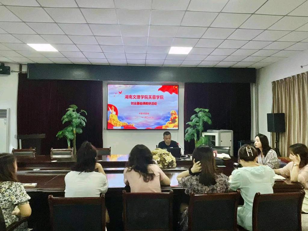 2022年6月27日下午3:00,我院在图书馆二会议室召开了创业基础课程教师会议。本次会议由芙蓉学院团委老师佘晨担任主持,参会人员为芙蓉学院团委书记张翠、实验中心副主任金科以及各系部创业基础课教师。