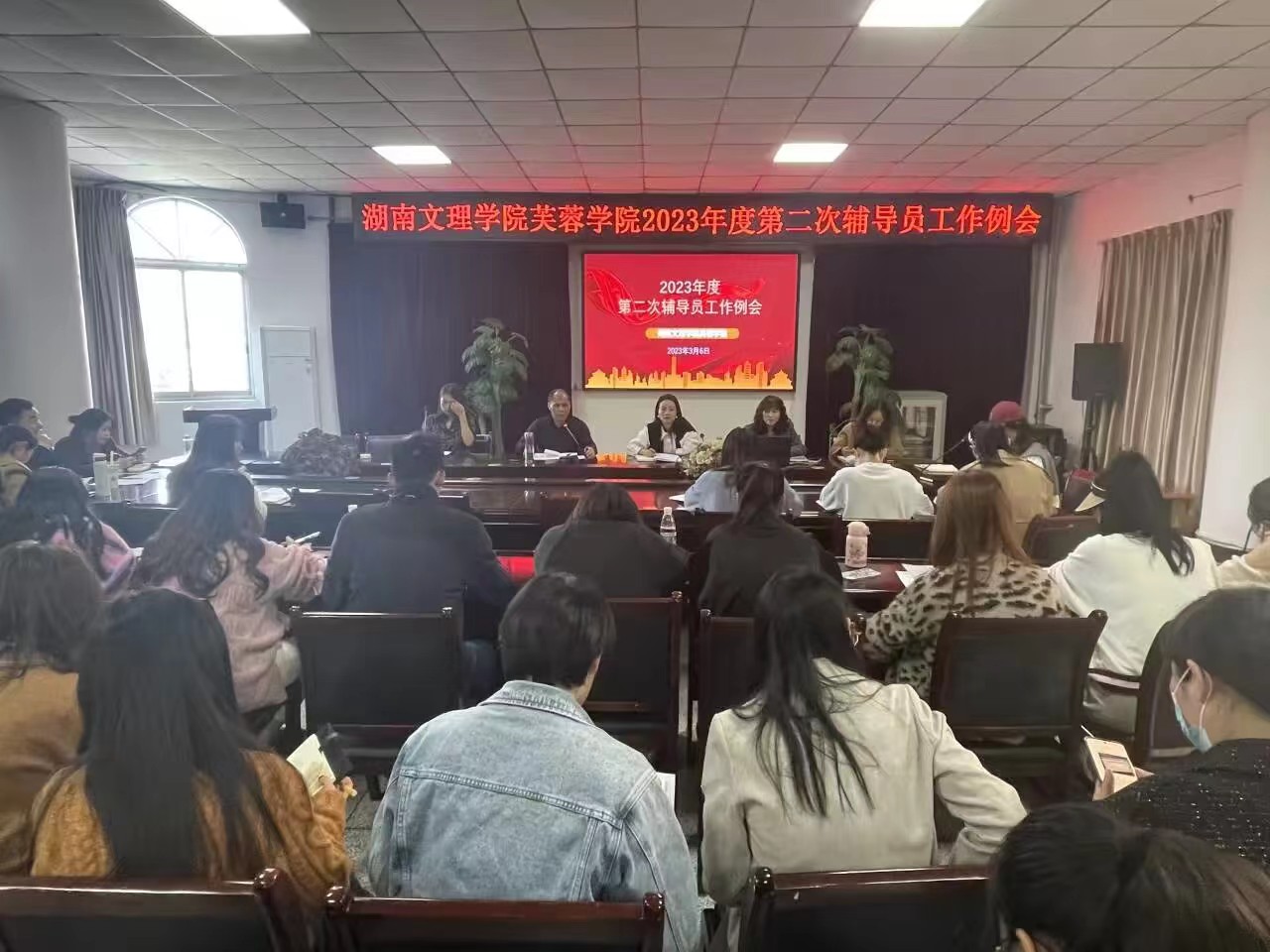 (通讯员:雷衍萱)为进一步发挥辅导员队伍示范引领作用,及时总结学生工作,沟通情况,发挥辅导员队伍的主观能动性,提高工作积极性,2023年3月6日,我院于二会议室召开湖南文理学院芙蓉学院第二次辅导员工作例会。出席本次会议的有:芙蓉学院党委副书记黄錾,芙蓉学院团委书记、党委委员张翠,芙蓉学院学生工作部副主任何筱,东西院各系全体辅导员们。