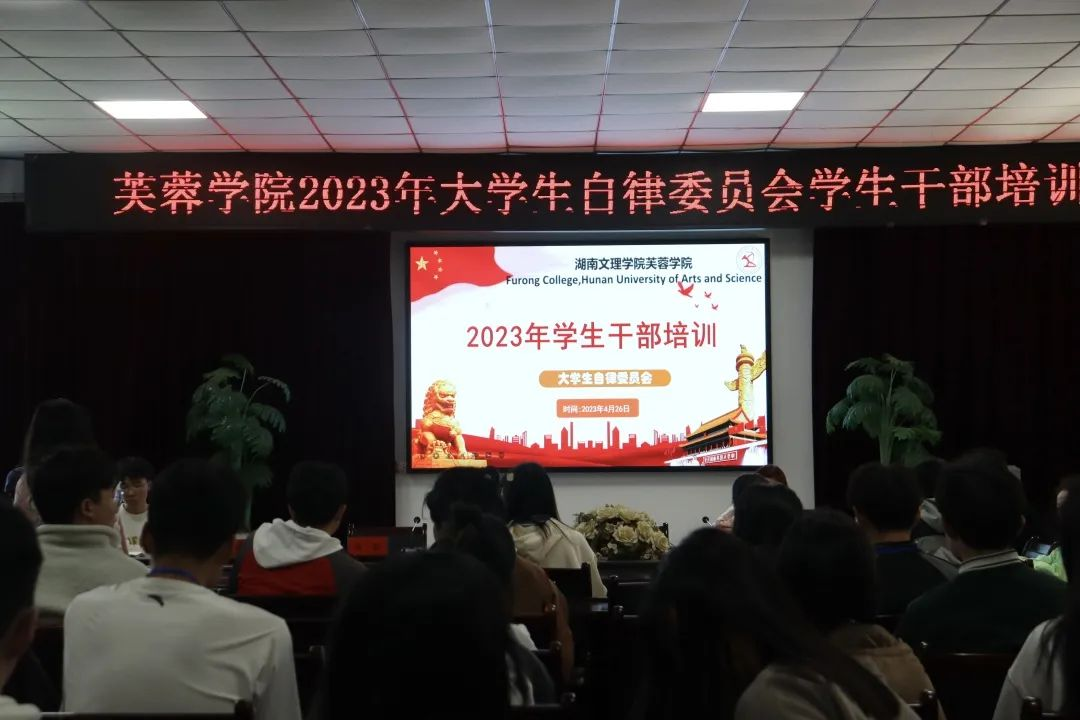 本网讯(通讯员 赵婷婷)我院于2023年4月26日中午12:00在图书馆第二会议室举办了芙蓉学院2023年大学生自律委员会学生干部培训开班会议,出席此次会议的有:院学生工作部何筱老师、吴桥林老师、黄兰老师、刘育熙老师以及学院大学生自律委员会全体成员。本次会议由办公室干部同学林梓炫主持。
